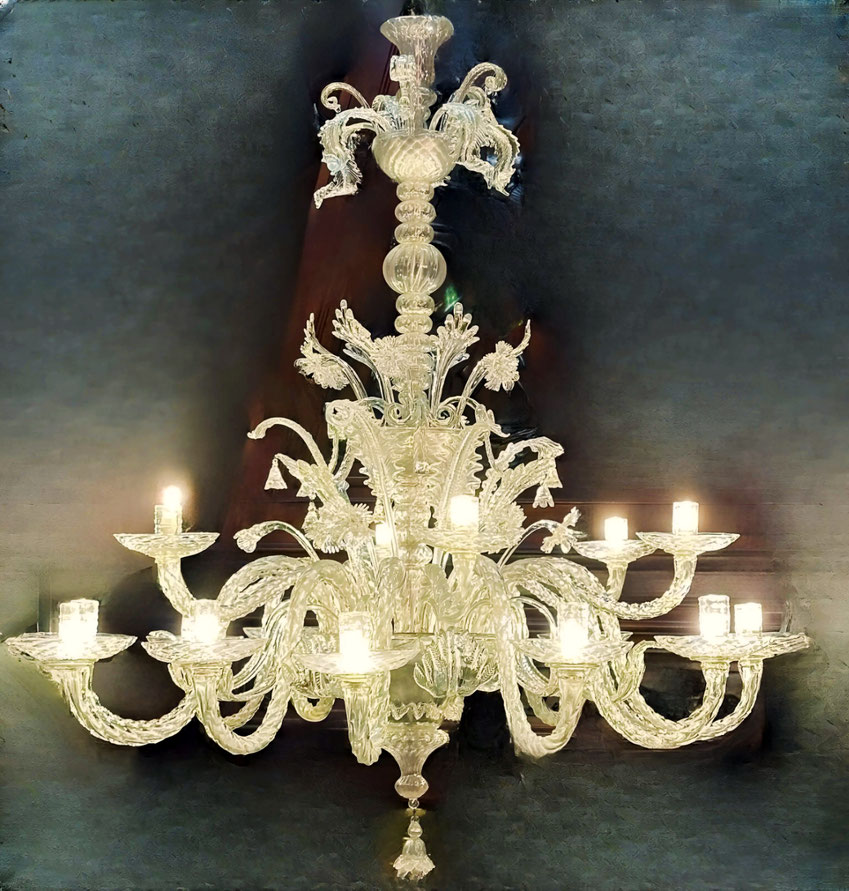 Materiale: vetro di Murano soffiato a bocca, trasparente o con sfumature leggere